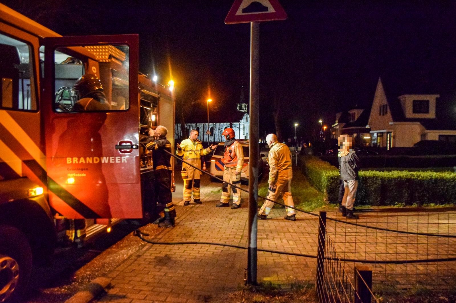 De brandweerlieden van Harkstede hebben deze vuurhaard geblust en hebben een nacontrole gedaan. Er wordt onderzoek gedaan naar de precieze toedracht.