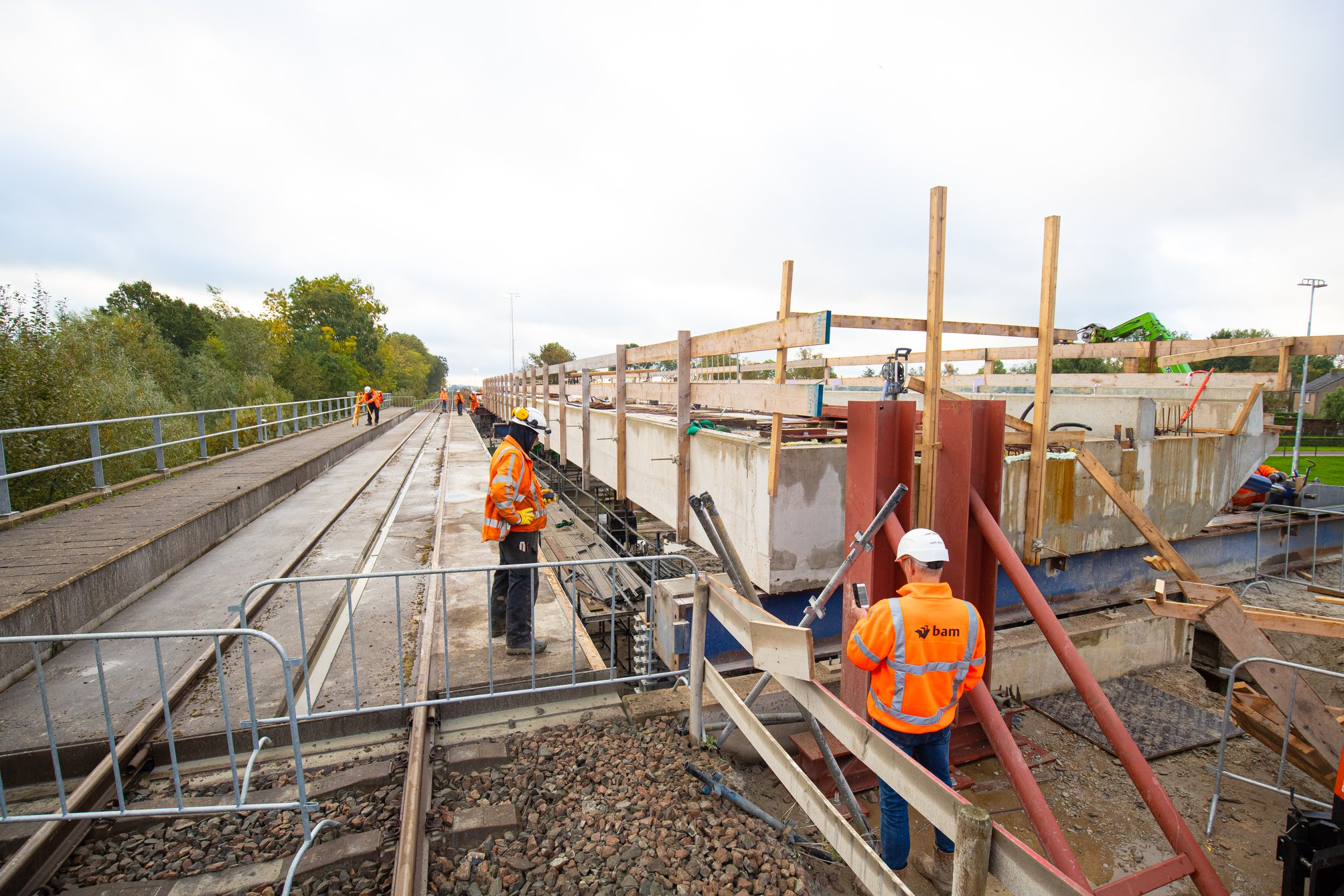 In Zuidhorn werd in de herfst van 2019 druk gewerkt aan het dubbelsporig maken van de spoorbrug bij het Wilhelminapark. Foto archief: Stefan Verkerk / ProRail.nl