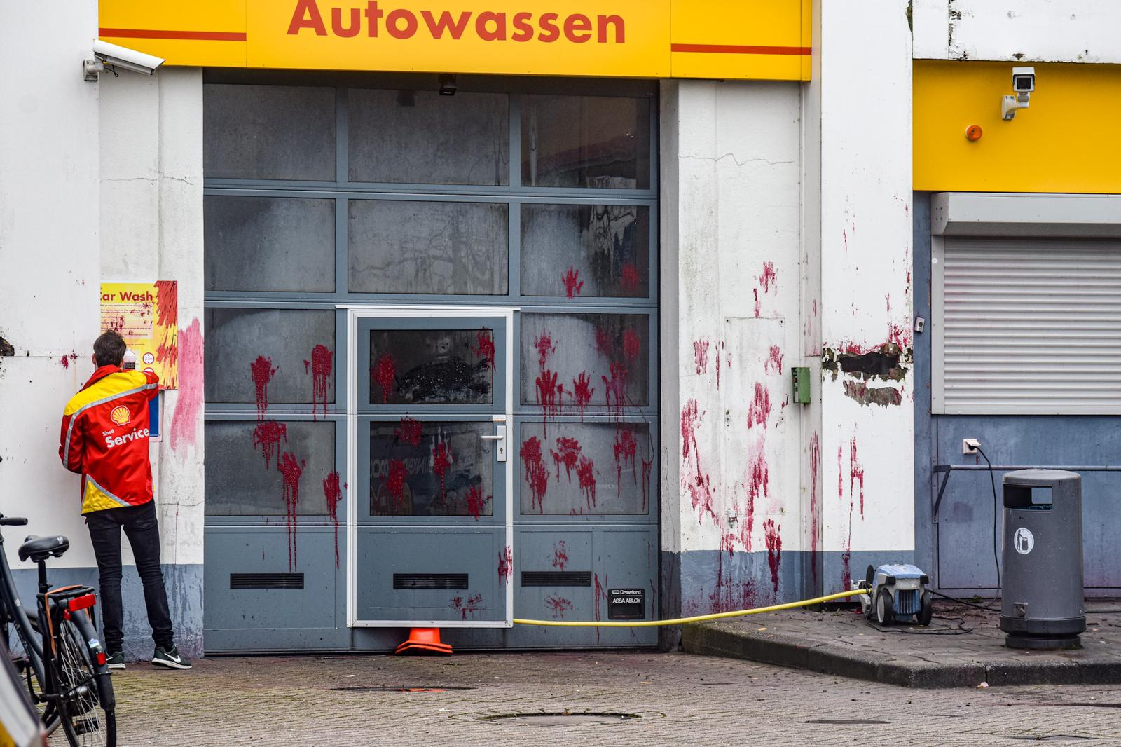 De rode verf werd zaterdagochtend bij het krieken van de dag ontdekt. “Er zit flink wat verf op het gebouw”, ziet incidentfotograaf Rick ten Cate van tencatefotografie.nl. “Medewerkers van het tankstation zijn op dit moment bezig om het er af te halen. Daarbij maken ze onder andere gebruik van een hogedrukreiniger. Maar ik hoorde dat het nogal een erg lastige klus is.” Het zou gaan om zogenaamde verf op oliebasis. “De politie is vanochtend na de melding ter plaatse geweest. Ze hebben afzetlint gespannen rond het gebouw en doen onderzoek hoe dit precies heeft kunnen gebeuren.”
