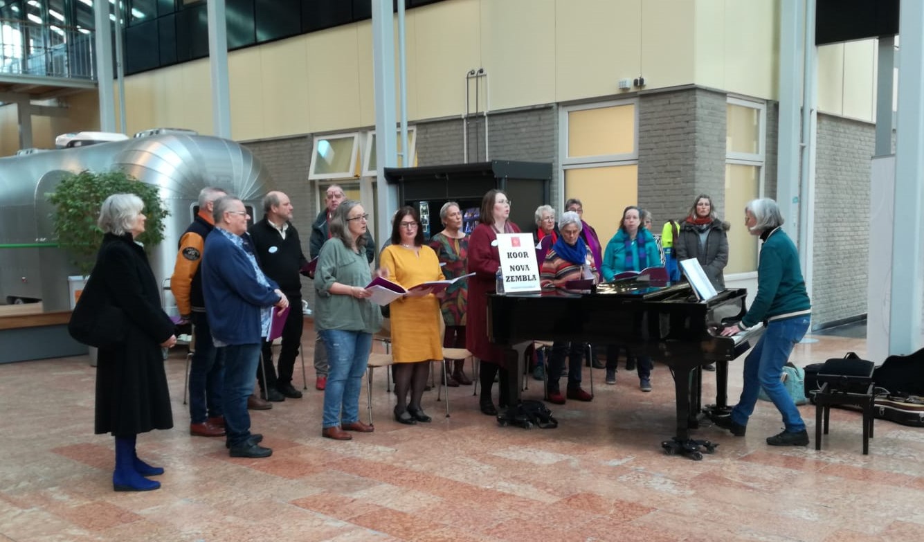 Dinsdagochtend trad koor Nova Zembla op in de hal van het UMCG. Hiermee wilden zij patiënten een hart onder de riem steken op Wereldkankerdag. Alle leden van het koor hebben de ziekte van dichtbij meegemaakt.