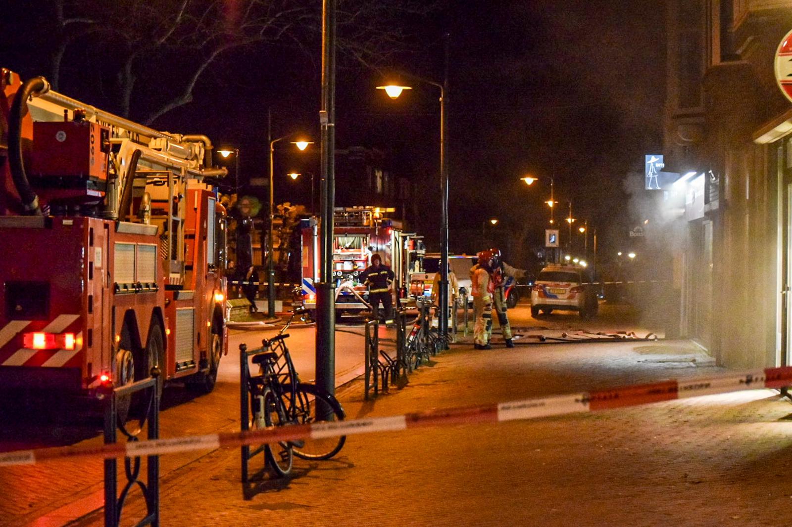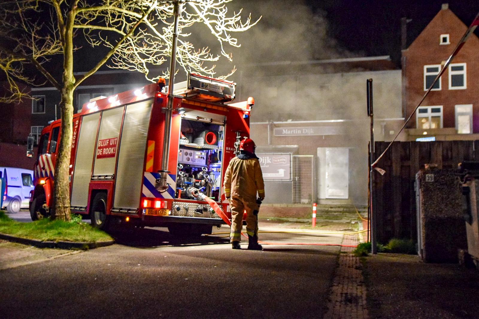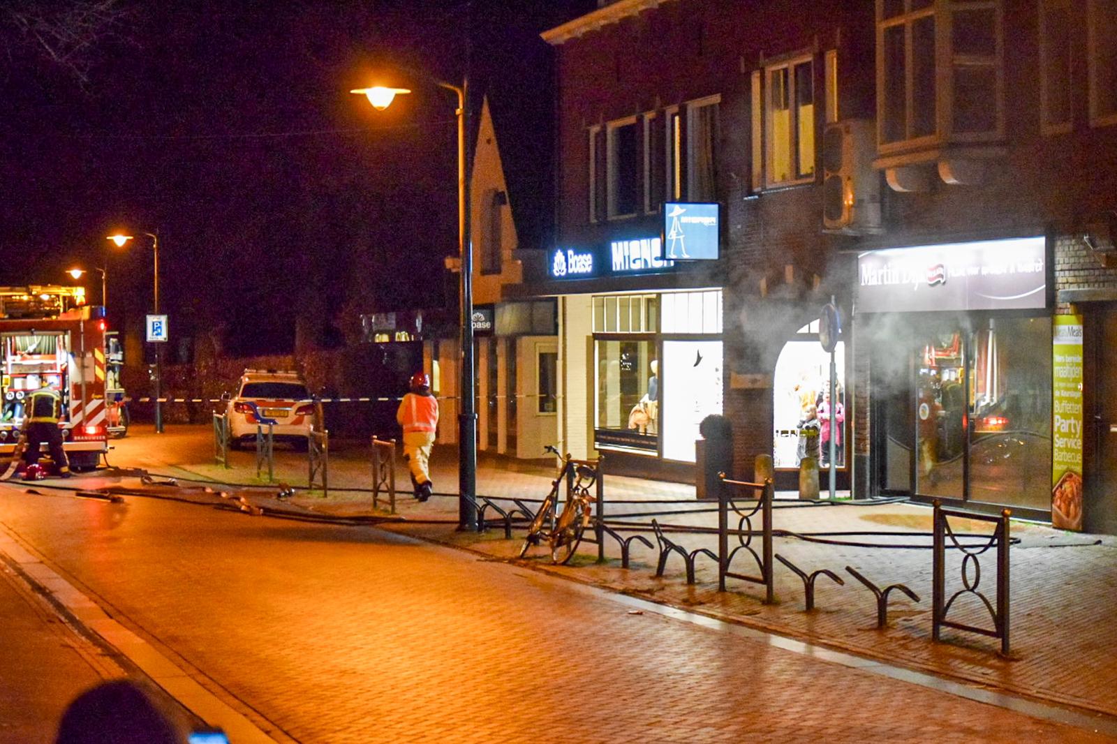 Ook aan de achterzijde van de slagerij kwam veel rook uit het pand. Foto: Rick ten Cate – tencatefotografie.nl