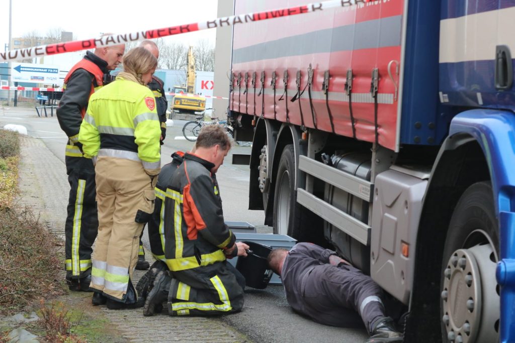 Het ongeluk gebeurde rond 10.15 uur. “Een vrachtwagen heeft een obstakel in de berm geraakt”, vertelt Meter. “Daarbij is de dieseltank opengescheurd waardoor de brandstof er uit is gaan lopen. Ik vermoed dat er al tientallen liters verloren zijn gegaan.” De hulp van de brandweer werd ingeroepen om het euvel te verhelpen. “Brandweerlieden zijn toen ze ter plaatse kwamen direct begonnen met een onderzoek. Ze hebben op verschillende manieren geprobeerd het lek te dichten maar dat is niet gelukt. Ze proberen nu om maar zoveel mogelijk diesel op te vangen.”