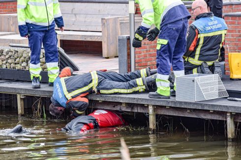 De melding van een huisdier in problemen kwam rond 15.45 uur bij de hulpdiensten binnen. “Bij een woning was een kat vast komen te zitten onder een steiger”, vertelt Ten Cate. “Duikers van de brandweer zijn ingezet om de kat te bevrijden. Een duiker is het water ingegaan. Met behulp van een vangstok kon het dier onder de steiger vandaan worden gehaald.