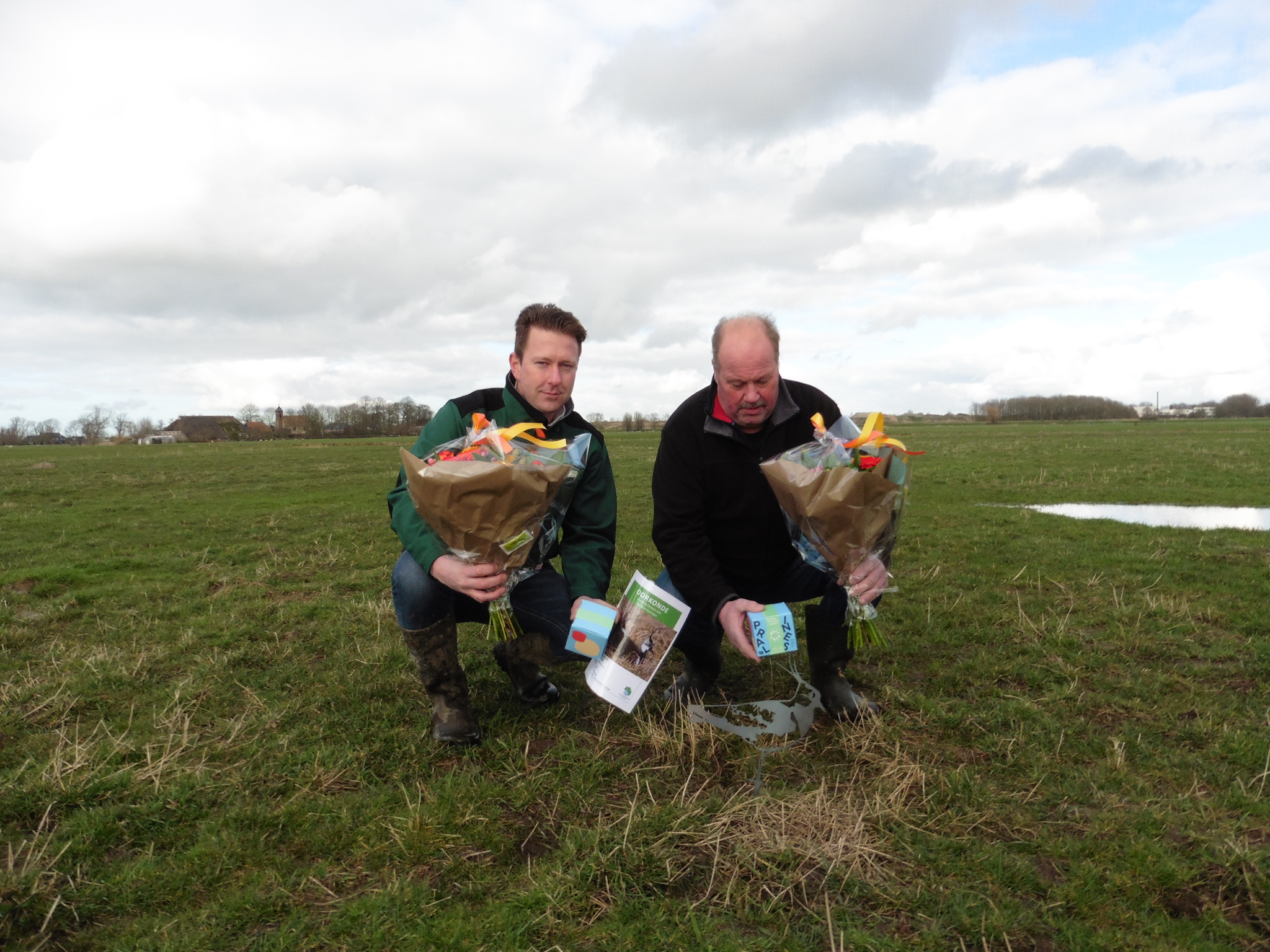Vorig jaar vond Darwinkel op hetzelfde perceel ook al het eerste kievitsei. Door de hoge grondwaterstand en het kruidenrijke gras is dit een uitermate geschikt perceel voor weidevogels.
