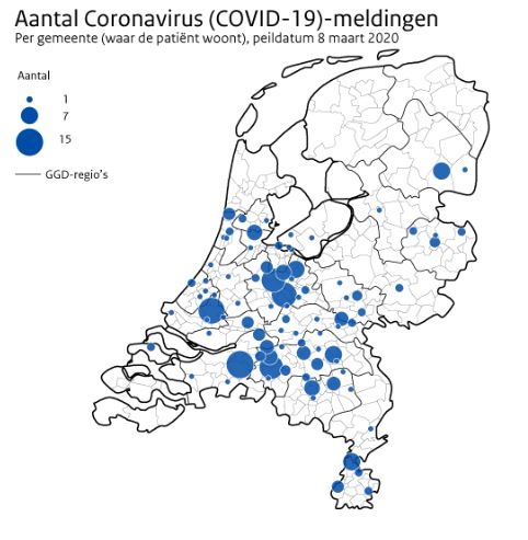 Groningen was voor zondag samen met Friesland en Zeeland de enige provincies waar nog geen coronabesmettingen waren geconstateerd. Uit de nieuwe cijfers blijkt dat op dit moment alleen Groningen en Friesland nog coronavrij zijn. In vergelijking met zaterdag zijn er 77 nieuwe patiënten gemeld. Het grootste aandeel patiënten bevindt zich in Utrecht en Noord-Brabant. Het totale aantal komt daarmee op 265. Drie patiënten zijn overleden. Afgelopen week overleed een man van 86 jaar afkomstig uit Hoeksche Waard. Het afgelopen etmaal zijn een 86-jarige man die opgenomen was in het Bernhoven Ziekenhuis in Uden en een 82-jarige man die in het Zuyderland Medisch Centrum in Sittard/Geleen verbleef overleden.