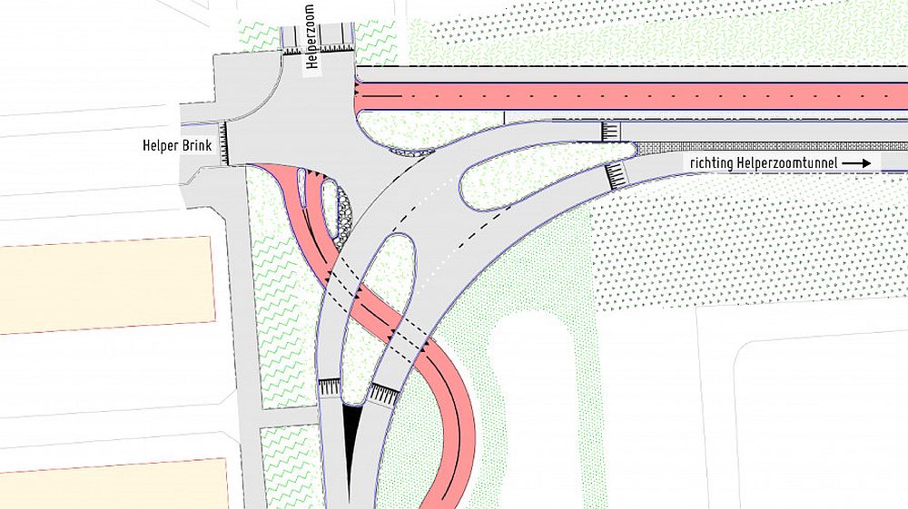Herepoort moet de werkzaamheden uitvoeren omdat op 3 april de Helperzoomtunnel klaar is. Komend weekend past de aannemerscombinatie de kruising van de Helper Brink met de Helperzoom aan.