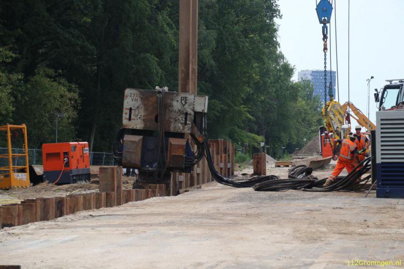 Om makkelijk bij beide bouwputten te komen wordt er een loopbrug gebouwd voor de mensen die er aan het werk zijn.