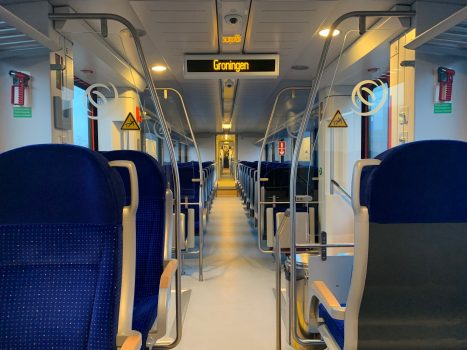 De stoptrein naar Groningen is vrijwel helemaal leeg. Foto: Sebastiaan Scheffer