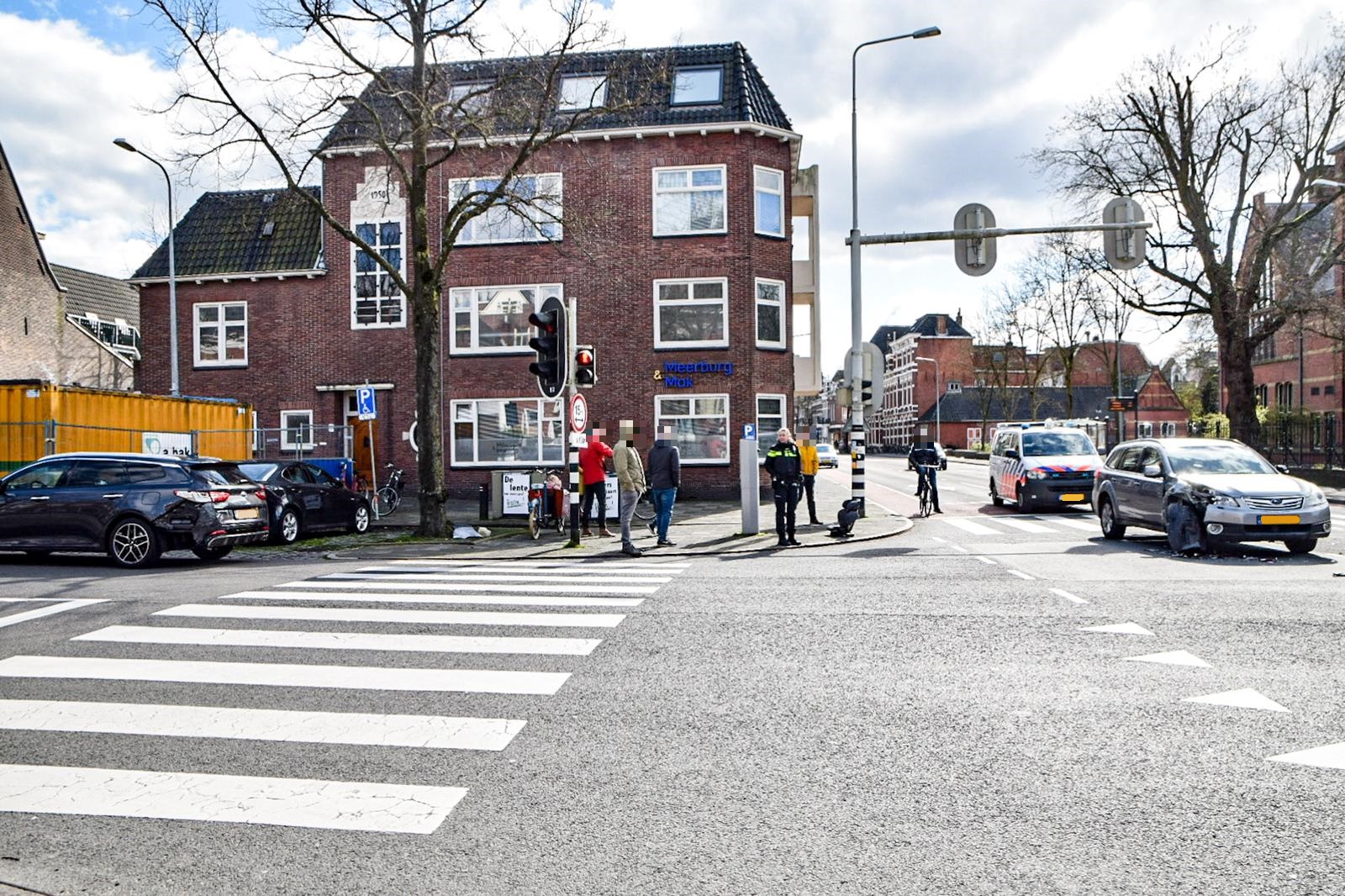 Het ongeluk gebeurde rond 12.30 uur op de kruising met de Westersingel. “Hoe het precies heeft kunnen gebeuren is onbekend”, vertelt Ten Cate. “Op de kruising zijn de twee auto’s met elkaar in botsing gekomen. Een grijze personenauto heeft forse schade aan de voorzijde, een donkere gekleurde auto heeft schade aan de rechterachterzijde.” Voor zover bekend is er niemand gewond geraakt.
