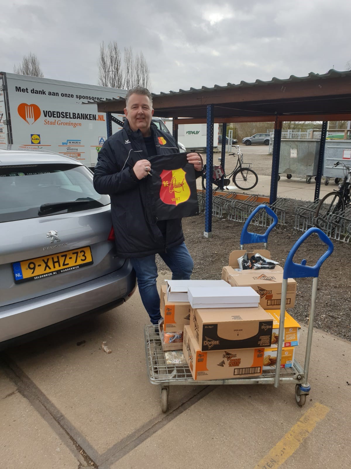 De voetbalverenigingen Be Quick 1887 en vv Haren hebben hun overbodige kantinevoorraad aan de voedselbank gegeven.