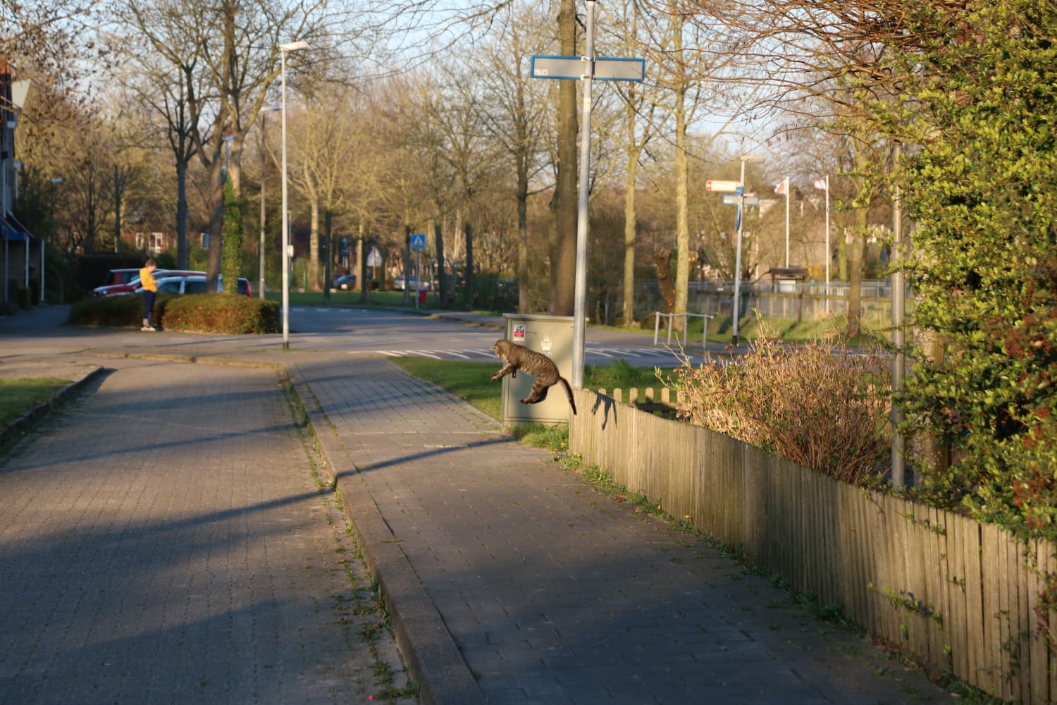 Uiteindelijk bleek alle hulp voor niets. De kat die de brandweerlieden steeds dichterbij zag komen besloot op een gegeven moment eieren voor zijn geld te kiezen. “Hij is gewoon naar beneden gesprongen”, zegt Wind. “Ik denk dat het toch zeker om een hoogte van tien meter gaat maar het dier kwam keurig op zijn pootjes terecht en zette het daarna op een rennen.” De brandweer is daarop weer teruggekeerd naar de kazerne.