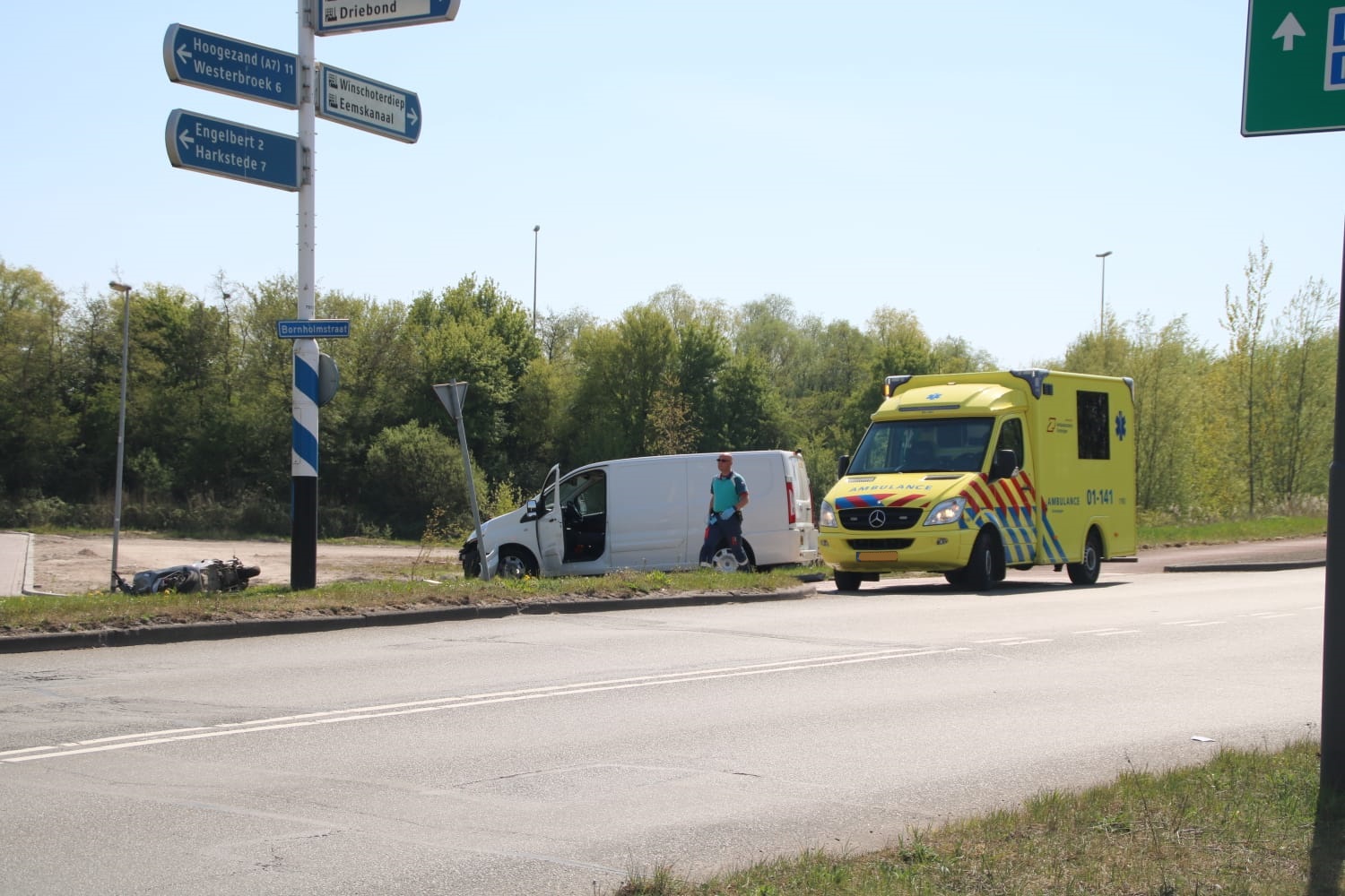 Het ongeluk gebeurde rond 13.40 uur ter hoogte van de kruising met de Gotenburgweg. “Hoe het precies heeft kunnen gebeuren is onbekend”, vertelt Ten Cate. “Naar alle waarschijnlijkheid heeft de bestuurder van het busje de scooterrijder over het hoofd gezien waardoor een aanrijding het gevolg was. Door de botsing kwam de scooterbestuurder ten val.” Hulpdiensten waren snel ter plaatse. “Ambulancemedewerkers hebben het slachtoffer gestabiliseerd. Daarna is deze met onbekende verwondingen overgebracht naar het ziekenhuis.”