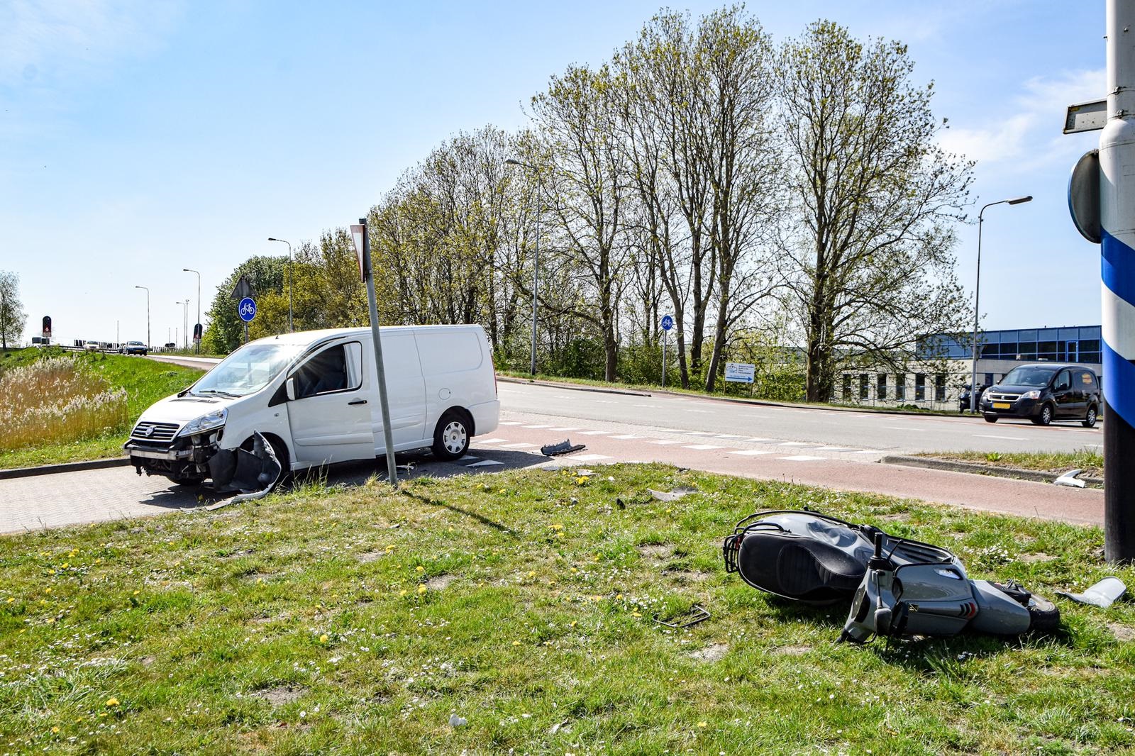 Zowel de scooter als het busje raakten bij het ongeluk flink beschadigd. De politie doet onderzoek naar de precieze toedracht.