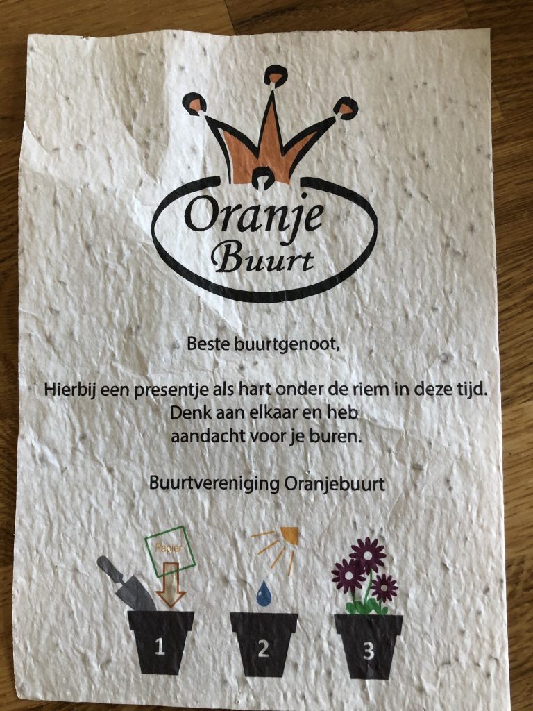 Zij kregen een zakje met daarin zaden om zelf wat te planten. De buurtvereniging wil daarmee de bewoners een hart onder de riem steken in deze coronatijd.