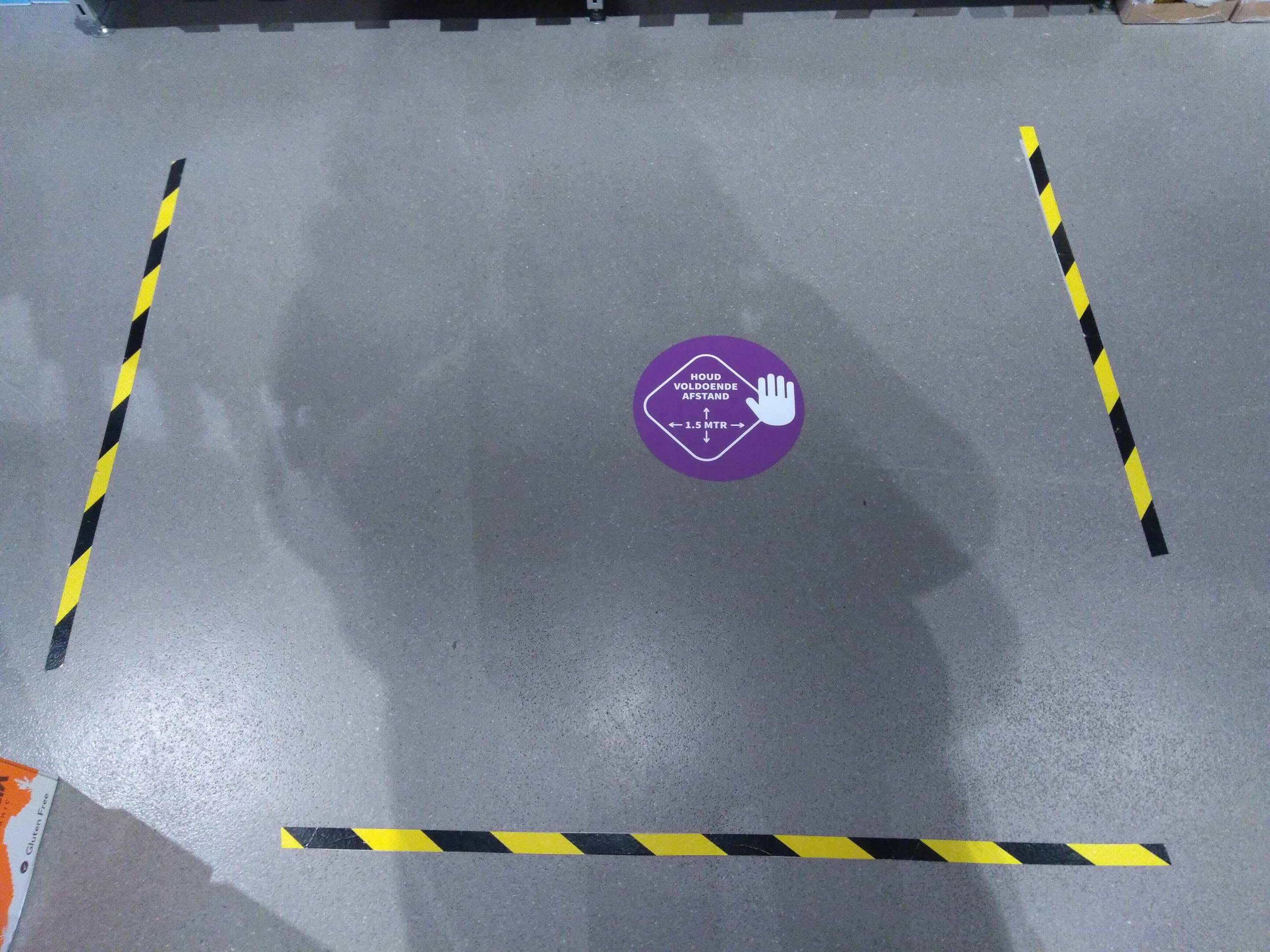 Houd afstand. Van voor en van achter en van links en van rechts. Winkels maken het aan vier kanten duidelijk (foto). Niet alleen afstand maar ook hoop houden.
