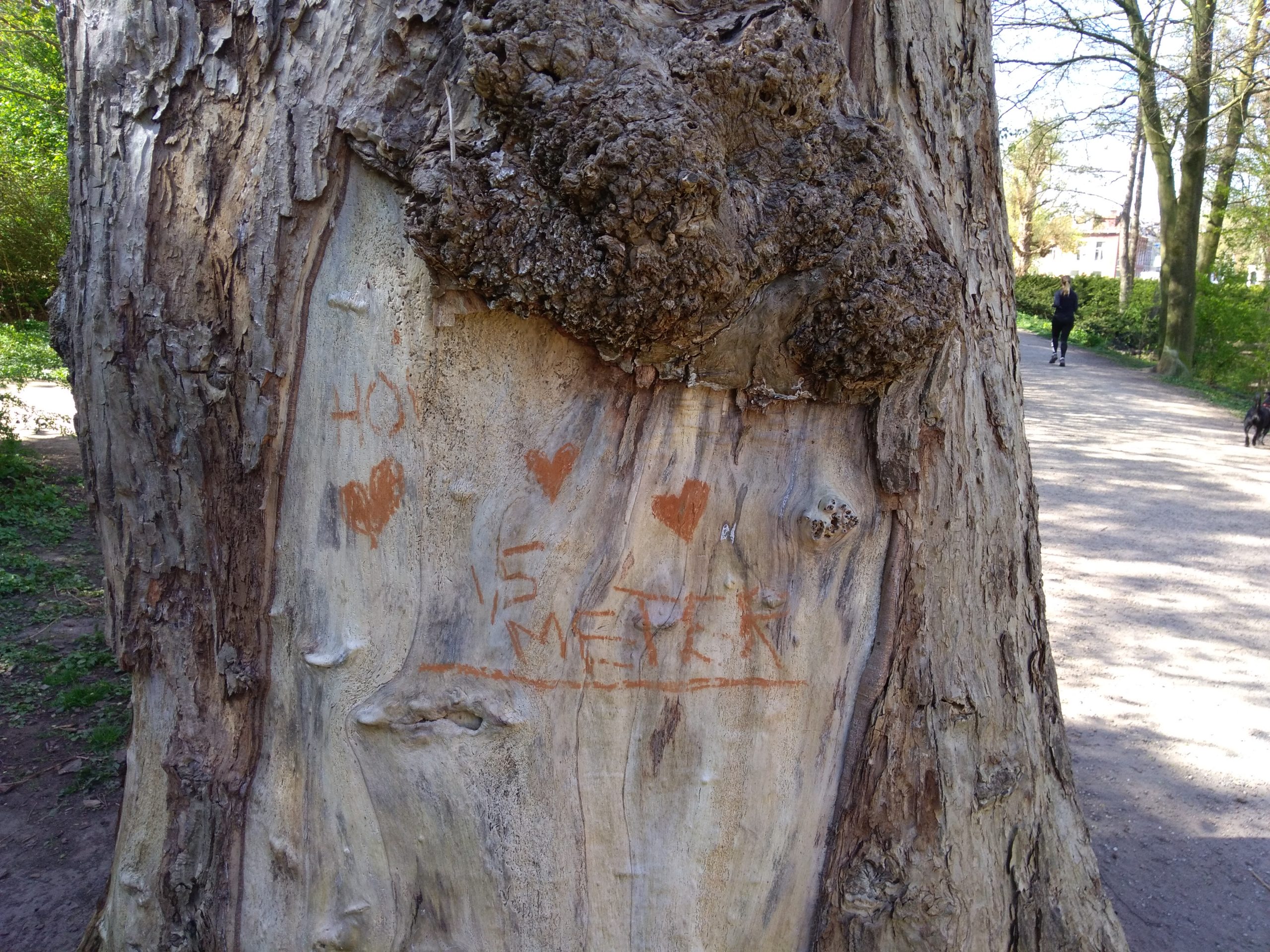De boodschap kan via mobiele digiborden uitgevent worden. Of via een oude boom (foto boven). Beide gebeurt in het Noorderplantsoen.
