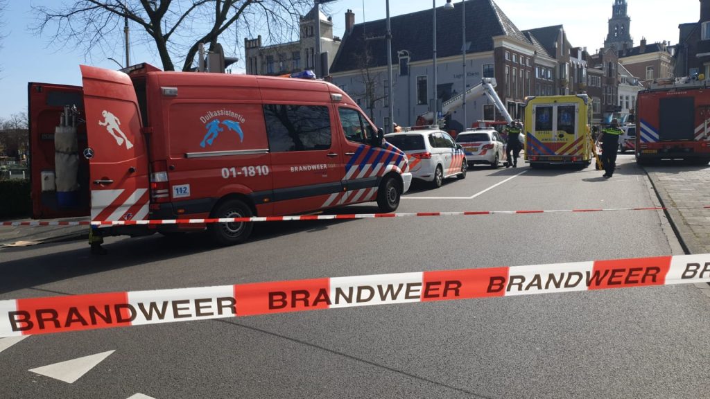 Het ongeluk gebeurde rond 12.15 uur. Volgens een woordvoerder van de politie probeerde iemand zichzelf iets aan te doen. Behalve een ambulance en verschillende politiewagens werd ook de brandweer ingezet. Een traumahelikopter landde op de Ossenmarkt. Bij het ongeluk raakte één persoon gewond. Na stabilisatie is het slachtoffer met onbekende verwondingen overgebracht naar het ziekenhuis.