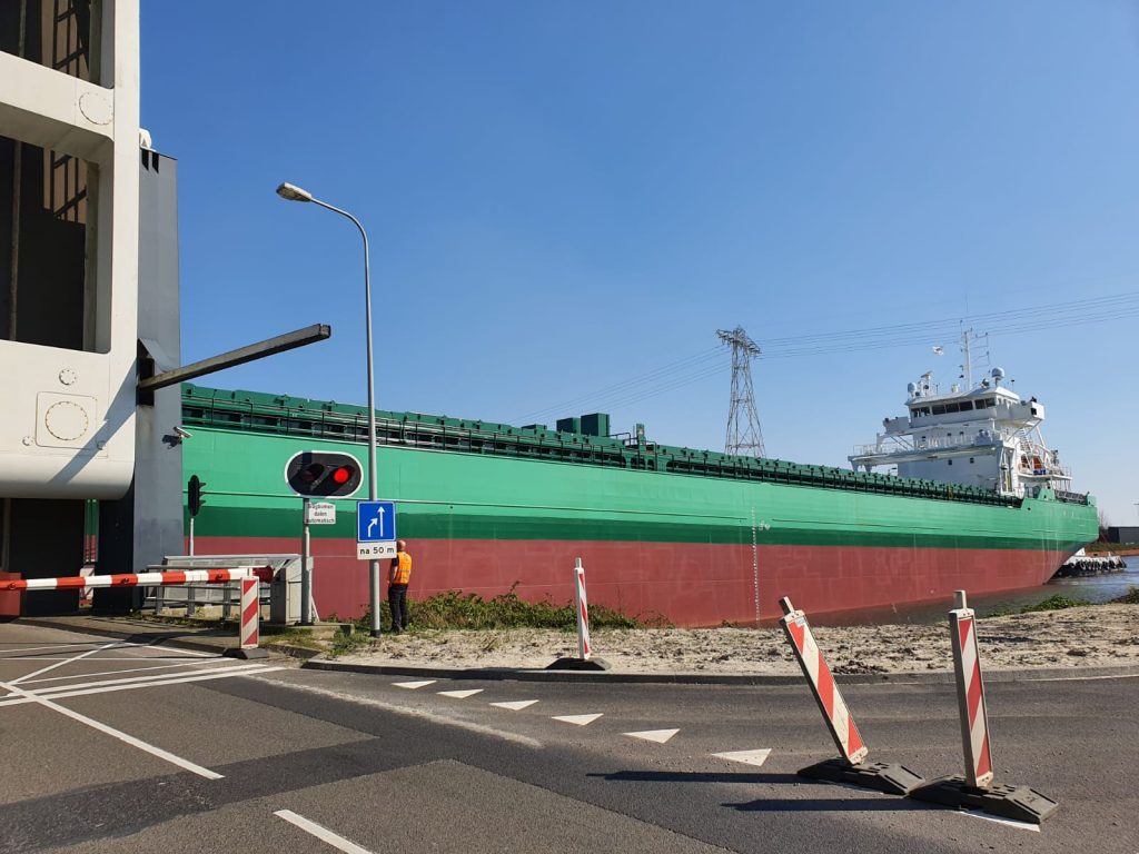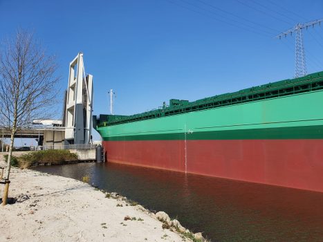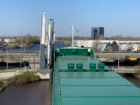 “Het gaat heel langzaam”, vertelt Patrick Wind van de incidentenwebsite 112groningen.nl. “Er is nagenoeg geen speling voor het schip waardoor je echt kunt spreken van precisiewerk.” De brug werd rond 15.10 uur opengedraaid. Rond 15.30 uur was het schip gepasseerd. “Automobilisten die stonden te wachten hebben even geduld moeten hebben maar uiteindelijk is alles gelukt.”
