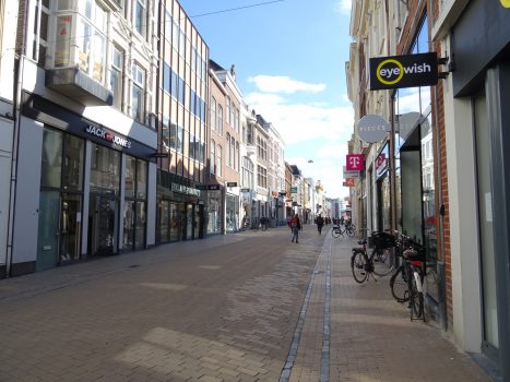 De Herestraat en ook de omliggende winkelstraten zijn zo goed als leeg en de meeste winkels zijn dicht.