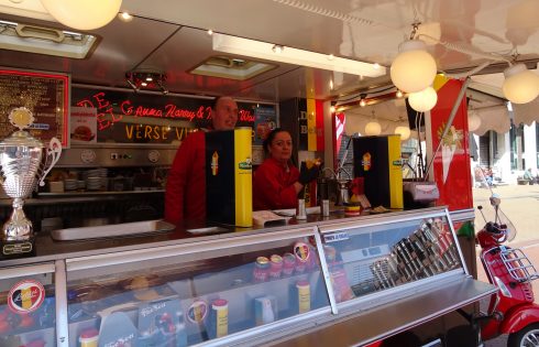 Op de Vismarkt is het nog vrij druk, maar in de omliggende straten en de Grote Markt, waar Waterloo met zijn kraam staat, is het vrij rustig: “Ik denk dat het ongeveer net zo druk is als vorige week. We staan met drie kramen in het centrum. Normaal gesproken staan we de hele dag friet te scheppen. Maar je ziet het zelf wel. We hebben nu weinig te doen. Ik denk dat we een omzetdaling van 70 procent hebben”.