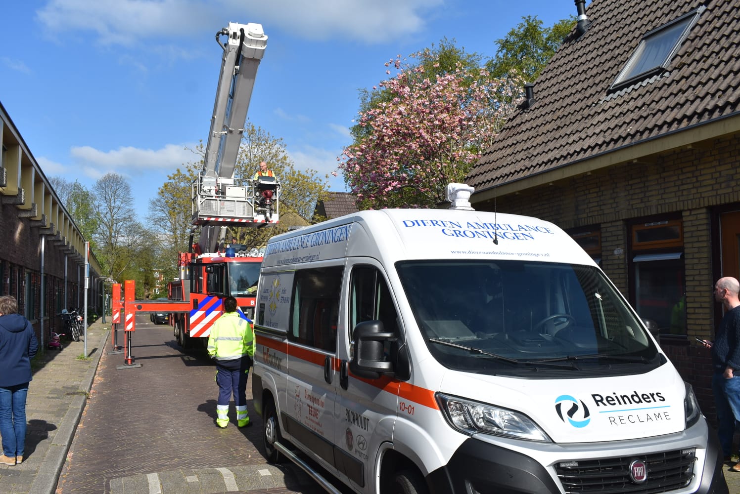 De Groninger brandweer moest zaterdagmiddag in actie komen in de Zonnebloemstraat in de Bloemenbuurt. Op het dak van een woning zat een kat die er niet af wilde.