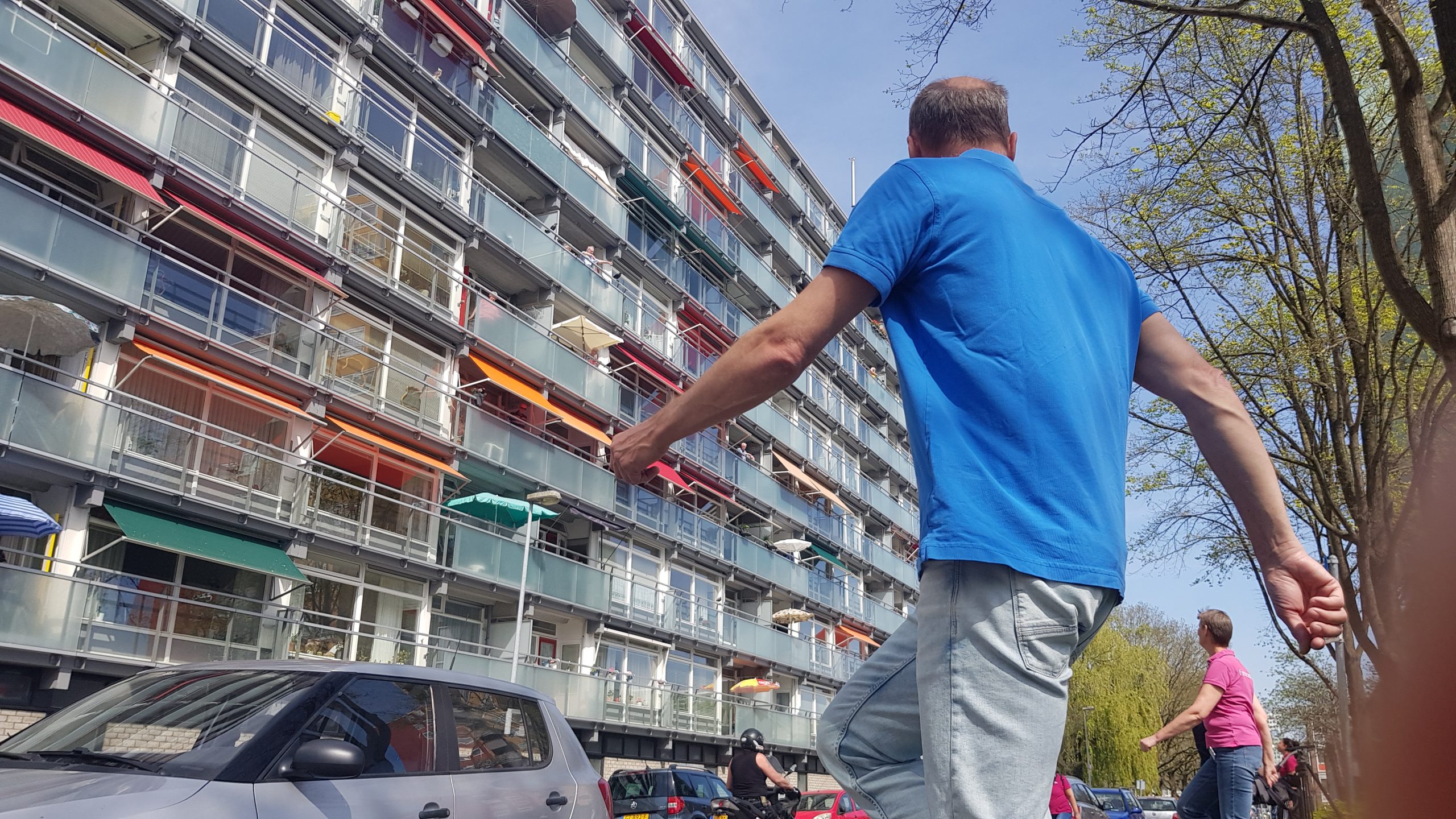 Bij de berkenflat in Selwerd konden bewoners vandaag sporten op hun balkon. Medewerkers van Zinn en Fysio4 gaven daar namelijk een sportles op straat.