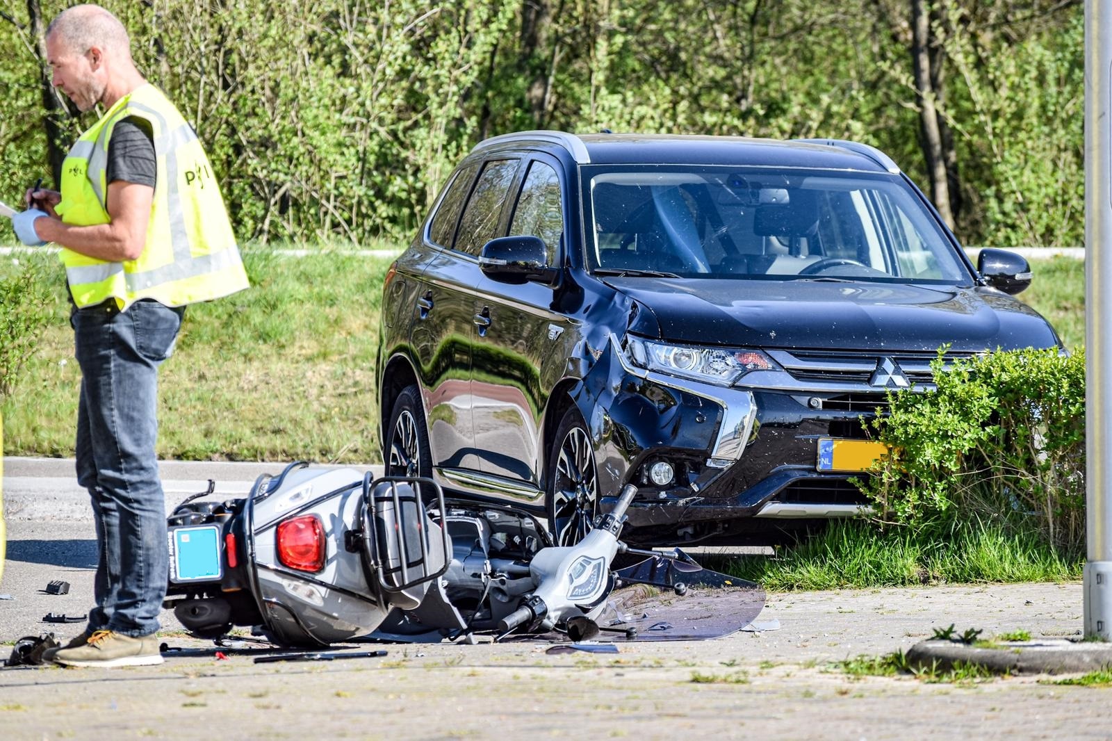 De politie doet onderzoek naar de precieze toedracht. De scooter en de auto raakten bij het ongeluk fors beschadigd. De auto is geborgen door een bergingsbedrijf.