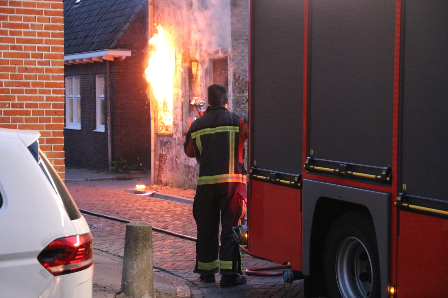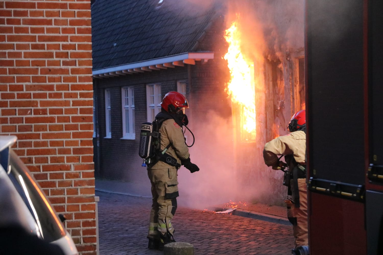 Het vuur lijkt onder controle. “De brandweerlieden rollen de eerste slangen inmiddels weer op.”