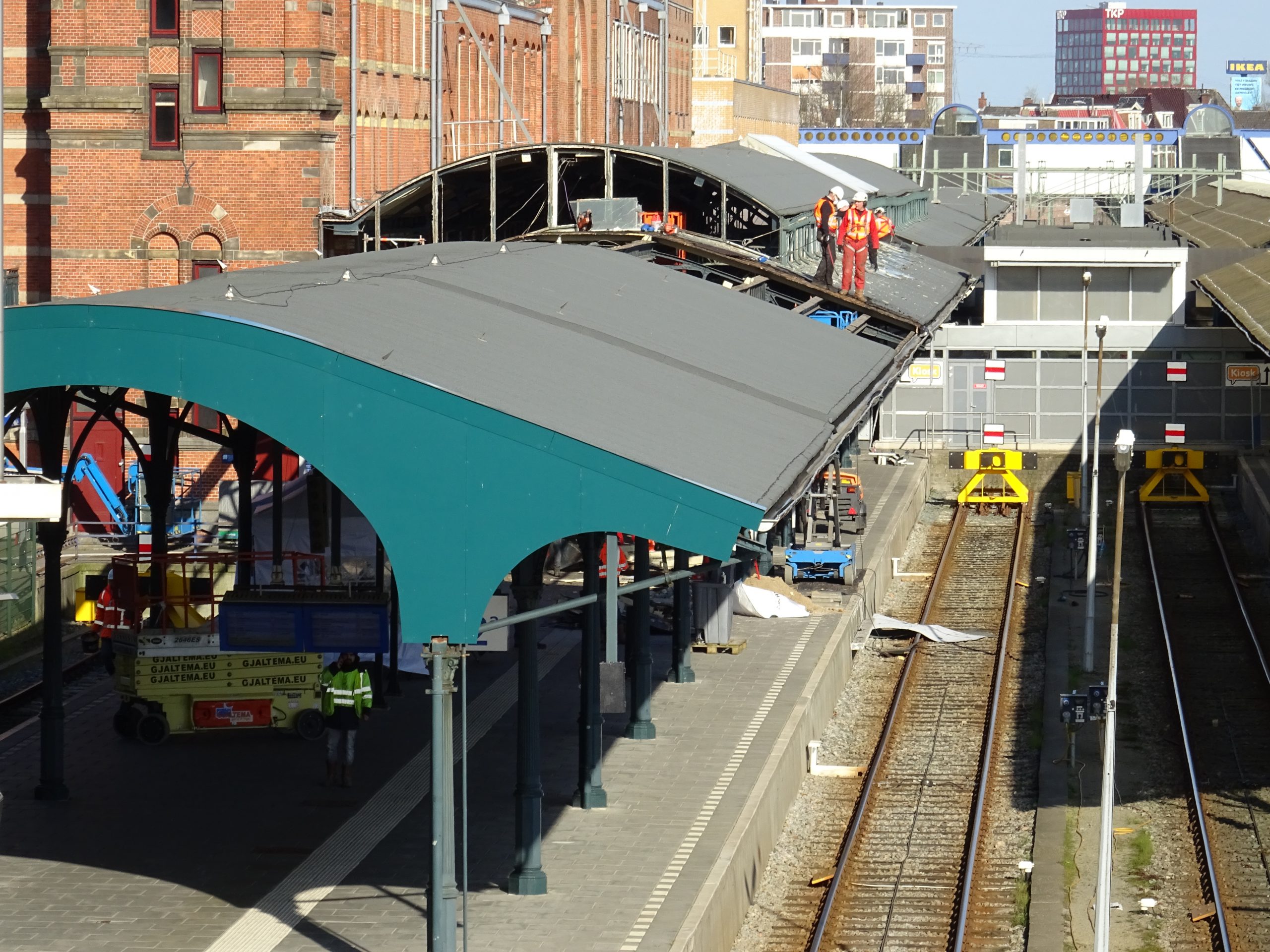 Het verwijderen van de historische overkappingen op het hoofdstation in Groningen is zaterdag begonnen. De ruim 120 jaar oude perronkappen worden gerestaureerd.
