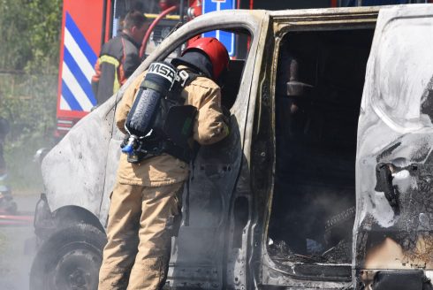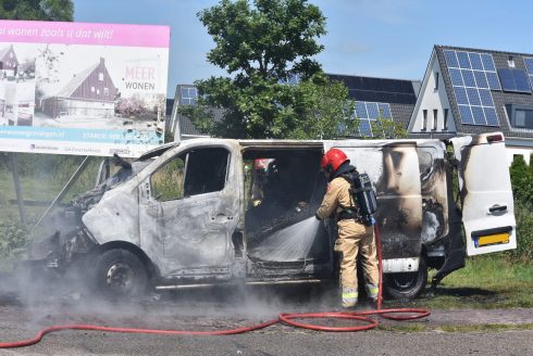 De melding van de brand kwam rond 12.40 uur bij de hulpdiensten binnen waarop een tankautospuit ter plaatse werd gestuurd. “De rook was al vanaf de ringweg te zien”, vertelt Mike Weening van Weening Fotografie. “Toen de hulpdiensten ter plaatse kwamen stond het busje al volledig in lichterlaaie. Brandweerlieden hebben het vuur bestreden door de twee stralen hogedruk in te zetten.” Een deel van de inhoud van het busje kon gered worden. Een ander deel ging verloren.