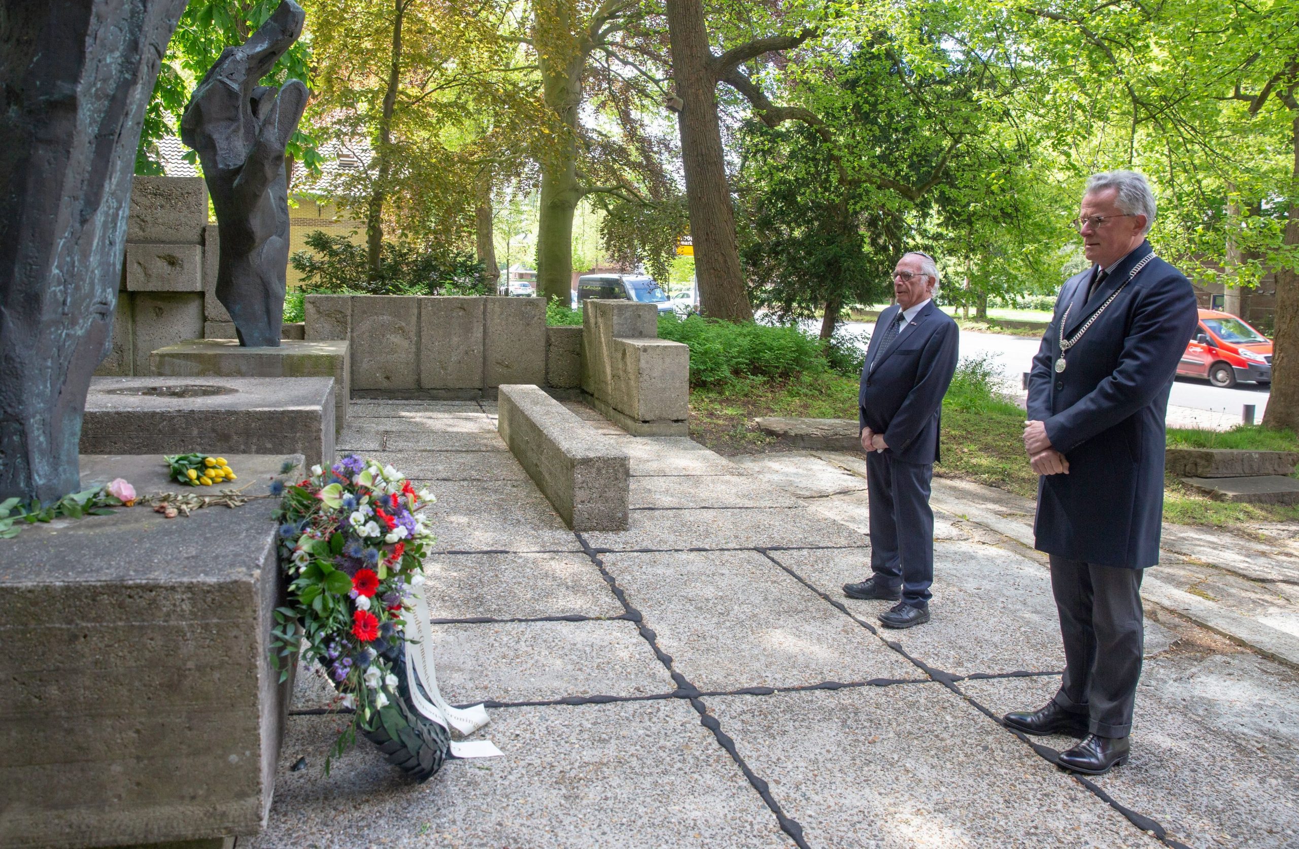 Burgemeester Koen Schuiling legde maandagochtend, met gepaste afstand tot een vijftal mensen (waaronder Frits Grunewald van de Joodse gemeenschap), een krans bij het Joods Monument aan de Hereweg. Later op de dag deed hij hetzelfde bij het tijdelijke Stadhuis aan de Radesingel.