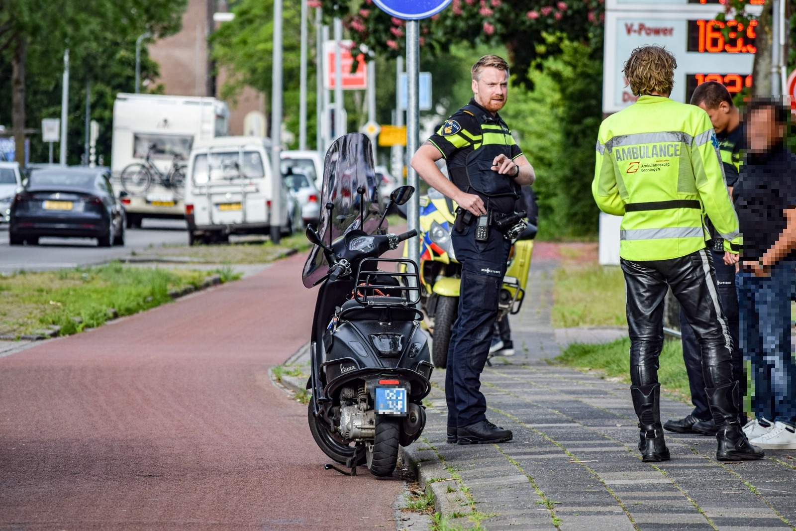 Het ongeluk gebeurde rond 18.45 uur ter hoogte van een tankstation. “Hoe het precies kon gebeuren is onbekend”, vertelt Ten Cate. “De scooter en de fietser kwamen met elkaar in botsing waarbij beide ten val kwamen. De fietser raakte niet gewond, de scooterrijder is voor de zekerheid gecontroleerd door een verpleegkundige van de ambulancemotor.” Uiteindelijk bleek dat het slachtoffer geen verwondingen had opgelopen.