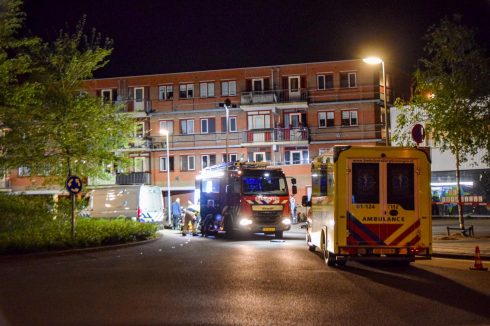 Brandweerlieden en ambulanceverpleegkundigen staan standby bij de flat. Foto: Rick ten Cate – tencatefotografie.nl