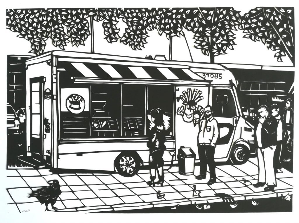 Op 10 juni gaat de expositie ‘Vitamine K’ open voor publiek. Zalen vol kunst waar je blij van wordt. Zoals knipkunst, die de snackwagen van Vinkhuizen uitbeeldt.