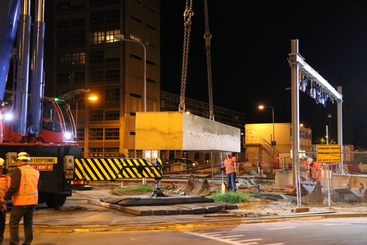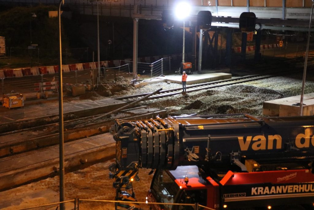 Met groot materieel zijn in de nacht van donderdag op vrijdag de laatste restanten van de Esperanto-spoorwegovergang weggehaald.
