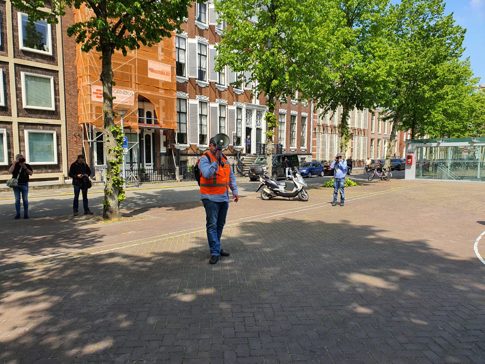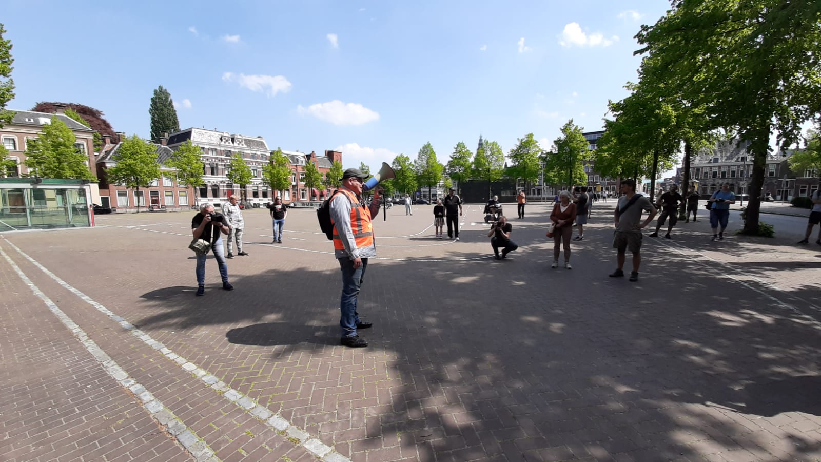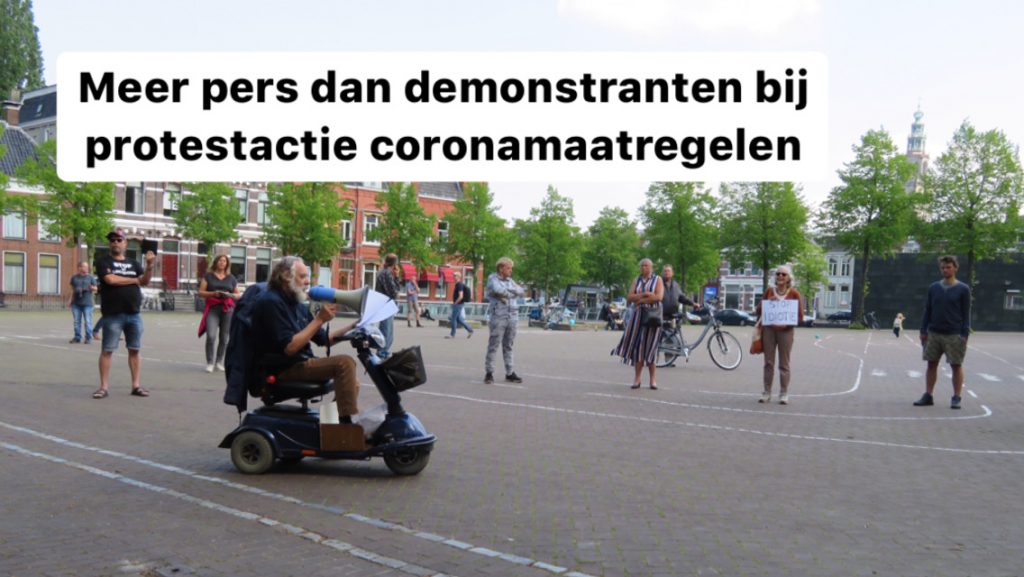 De protestactie tegen de coronamaatregelen die zaterdagmiddag plaatsvindt op de Ossenmarkt trekt vooralsnog meer pers en toeschouwers dan demonstranten.