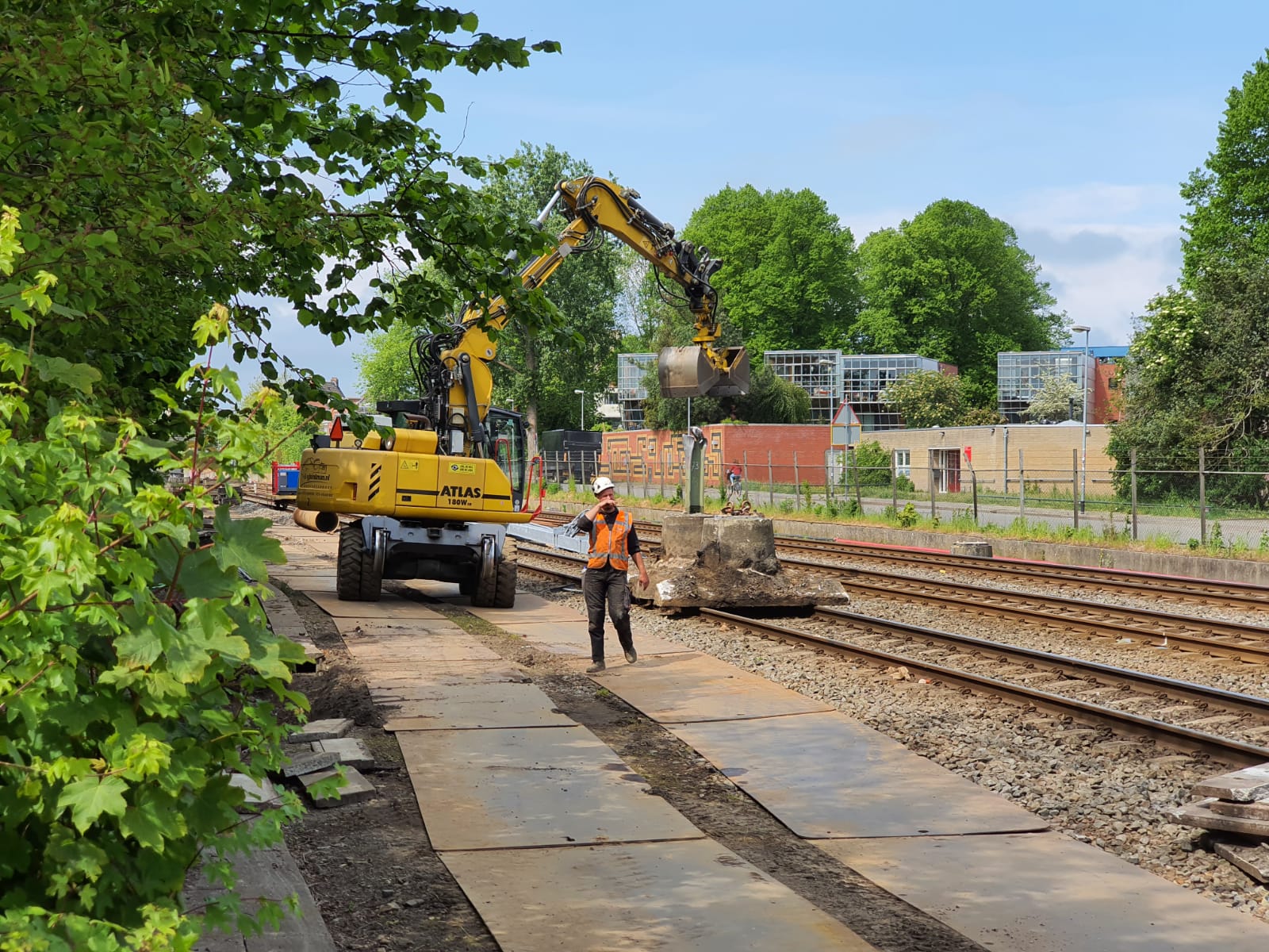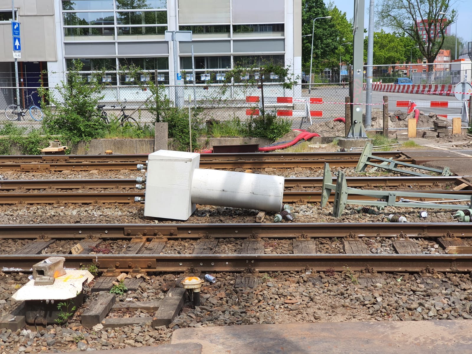 Tussen het Hoofdstation en het nieuwe opstelterrein De Vork wordt deze maand druk aan het spoor gewerkt. Zo wordt er een vierde spoor aangelegd, wordt de spoorwegovergang Esperanto ontmanteld en krijgt station Europapark een extra perron. Vanwege het nieuwe spoor en de installatie van wissels wordt ook het seinwezen opnieuw ingericht. In de oude situatie stond er een seinportaal voor de spoorwegovergang ter hoogte van de Verlengde Willemstraat. Het nieuwe portaal werd zondagmiddag met een kraan en hoogwerkers op zijn plaats gehesen honderd meter verderop tussen de Helperzoom en de Verlengde Lodewijkstraat.