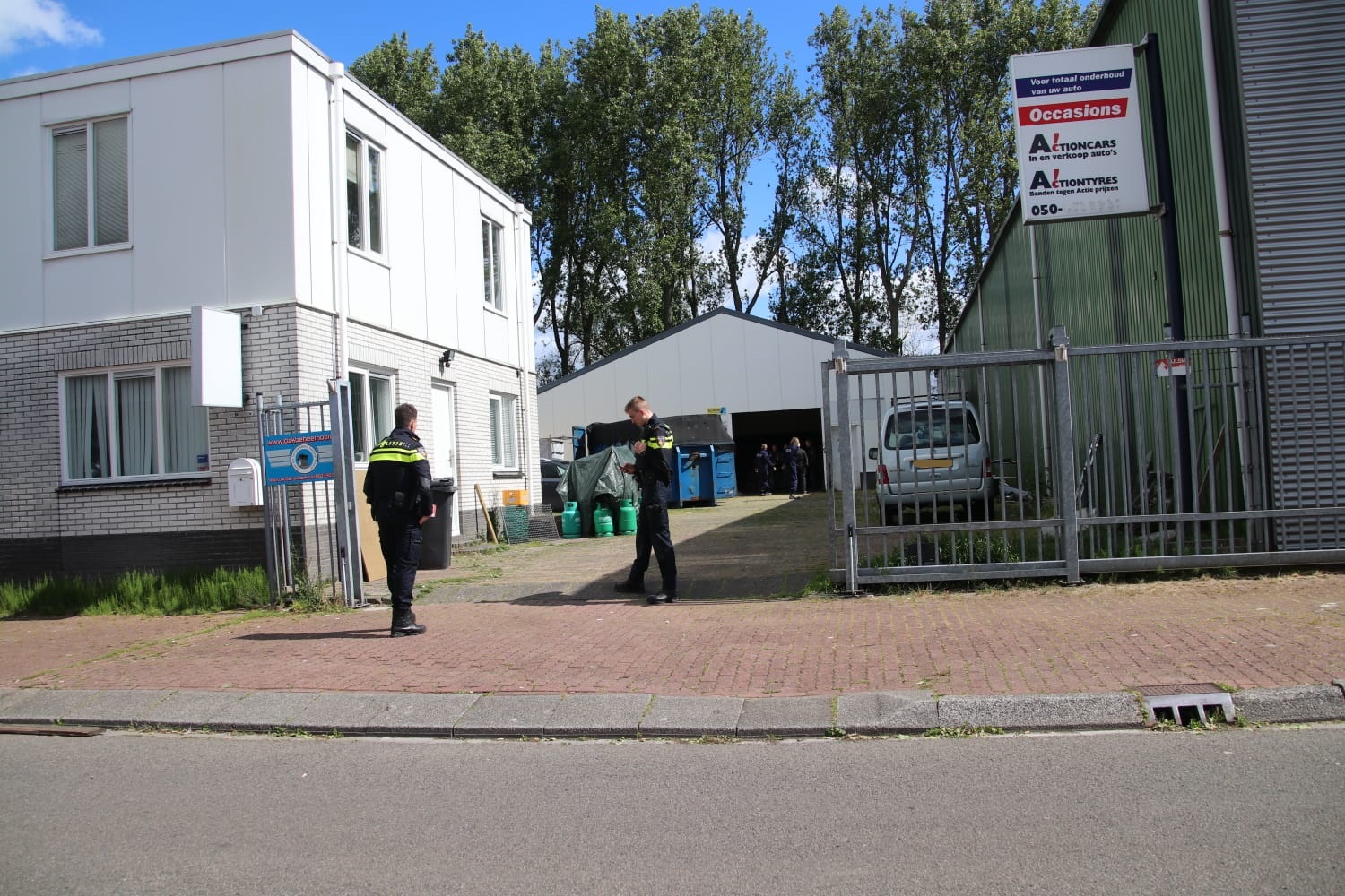 De politie doet donderdagochtend onderzoek bij de loods. Foto: Joey Lameris – 112groningen.nl