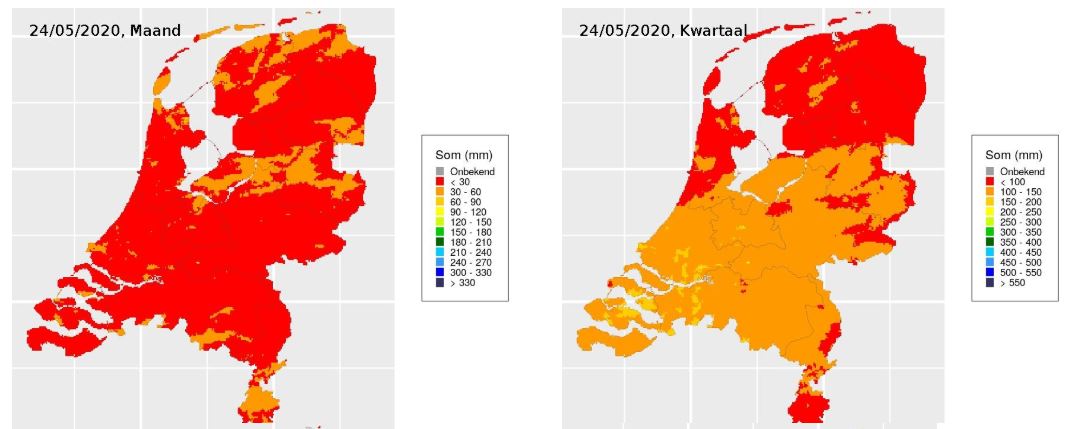 Volgens het KNMI is er het afgelopen etmaal twee millimeter aan regen gevallen in Groningen. Het maandelijkse neerslagtekort is echter ruim dertig millimeter. Het kwartaaltekort bevindt zich boven de honderd millimeter. Groningen is volgens de gegevens één van de droogste gebieden van Nederland. Waterbeheerders snakken ook naar flinke regenbuien in juni. Op dit moment is het het droogste voorjaar ooit gemeten. Gemiddeld over het land is er een tekort van ruim 130 millimeter. Tijdens het droogste jaar ooit, 1976, was er een tekort in mei van 105 millimeter.