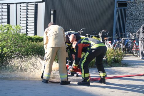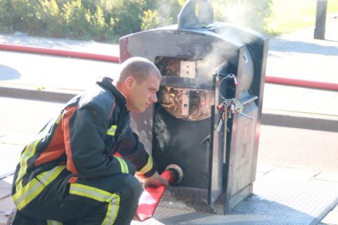 De melding kwam rond 18.40 uur bij de hulpdiensten binnen waarop een tankautospuit ter plaatse werd gestuurd. “Bij aankomst bleek het te gaan om een ondergrondse huisvuilcontainer”, vertelt Meter. “Deze stond flink te roken. Om het vuur onder controle te krijgen hebben brandweerlieden de container vol laten lopen met water. Om over genoeg water te beschikken hebben ze een standpijp op een hydrant geplaatst. Deze hydrant, of brandkraan, bevond zich in het trottoir. Vervolgens hebben ze met een brandslang het water naar de container getransporteerd. Al snel was het vuur onder controle.”