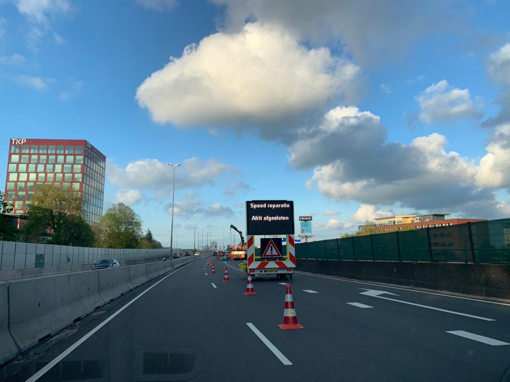 Vanwege de werkzaamheden is de afslag afgesloten. Het is onbekend hoe lang de afsluiting gaat duren.