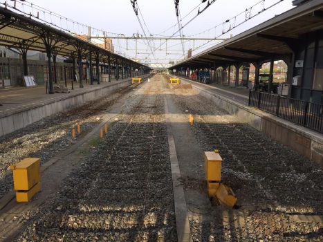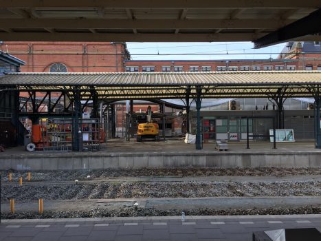 Op het Hoofdstation wordt dit weekend gewerkt aan de verdere ontmanteling van de perronkappen. Afgelopen week gebeurde dit al aan de westzijde, nu moet ook de oostzijde er aan geloven. De perronkappen worden weggehaald zodat ze gerestaureerd kunnen worden. Ze voldoen niet meer aan de huidige eisen. Op het middenterrein is de sloop van de gebouwen begonnen waar de winkels in waren gevestigd. Vorige week werd de kiosk al met de grond gelijk gemaakt. Daarnaast valt op dat de sporen waar de intercitytreinen normaliter stoppen, ingekort zijn.