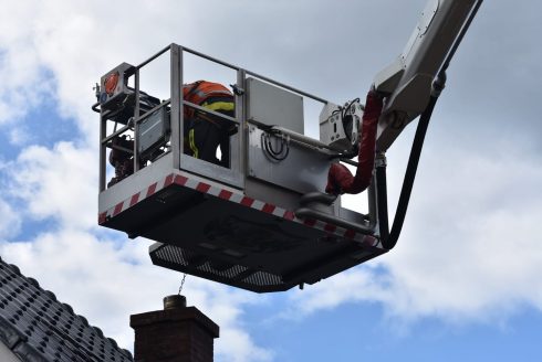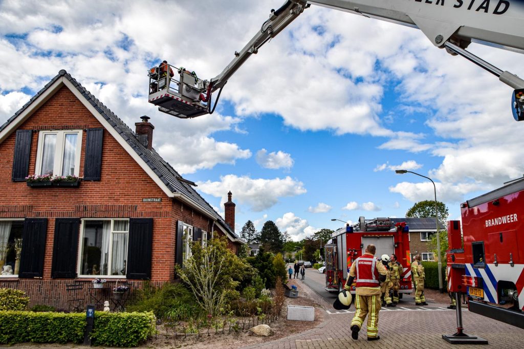De melding van de brand kwam rond 17.10 uur bij de hulpdiensten binnen waarop een tankautospuit van de blusgroep Eelde ter plaatse werd gestuurd. Ook werd de hulp ingeroepen van een hoogwerker uit Stad. “Bij aankomst bleek dat de brand al grotendeels onder controle was”, vertelt Ten Cate die enkele minuten na de brandweer ter plaatse was. “Er zat een vuurhaard in het schoorsteenkanaal. De hoogwerker werd gestempeld waarna een brandweerman in de korf omhoog is gegaan. Hij heeft het schoorsteenkanaal schoongemaakt.” Het schoonmaken gebeurde met behulp van een rammeneur.