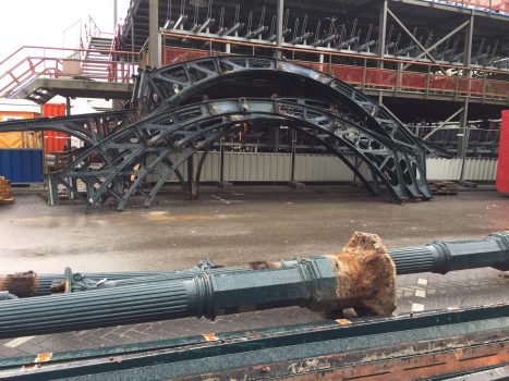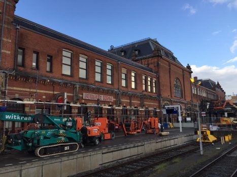 Op het Hoofdstation wordt deze week druk gewerkt om de oude perronkappen te verwijderen. De kappen worden de komende jaren gerestaureerd.