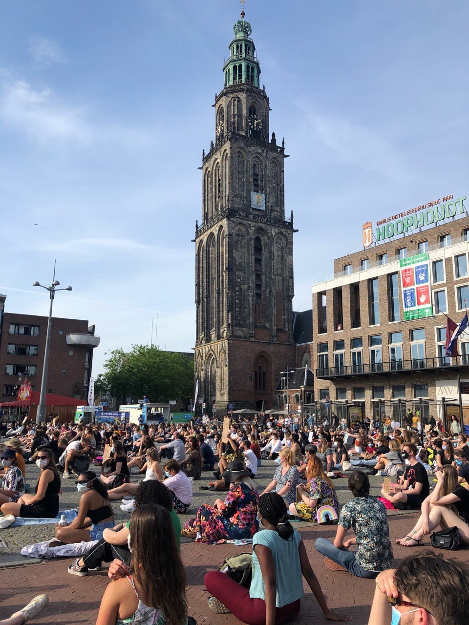 De anti-racismedemonstratie op de Grote Markt in de binnenstad van Groningen heeft dinsdagavond honderden demonstranten getrokken. De actie vond plaats naar aanleiding van de dood van de 46-jarige George Floyd in Amerika die door toedoen van agenten om het leven kwam.