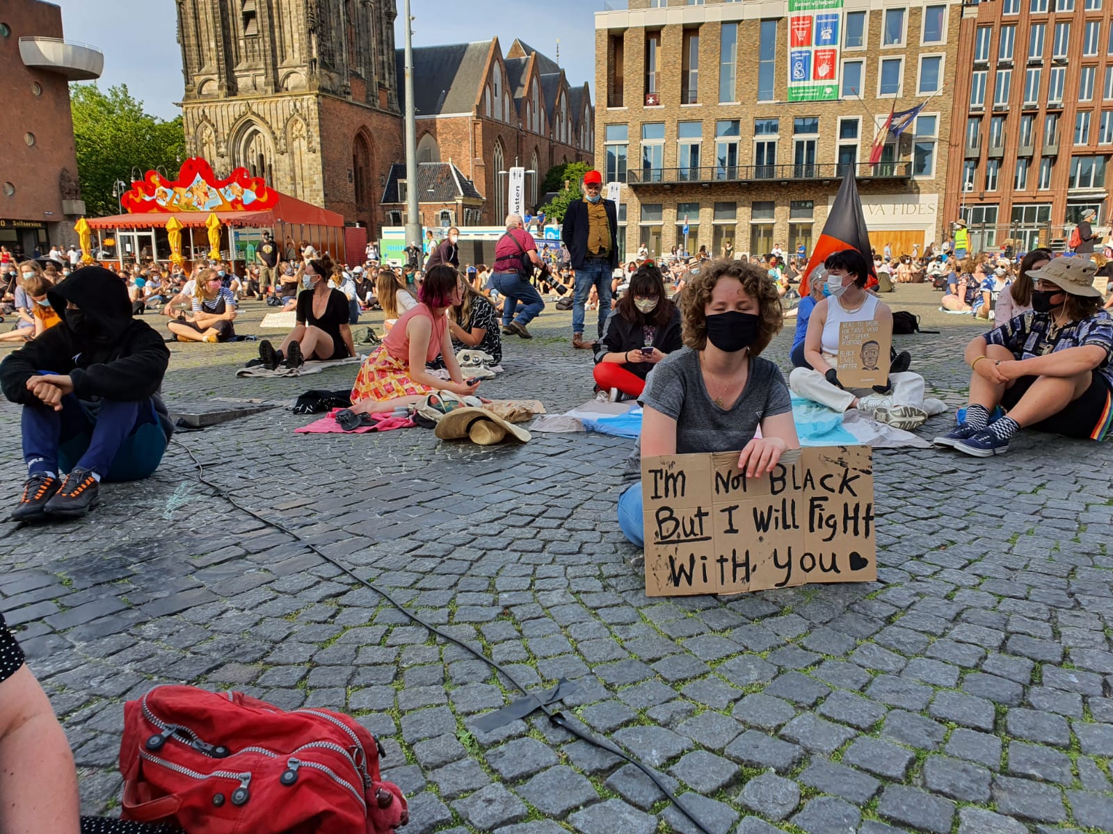 De donkere Floyd overleed nadat een witte politieagent minutenlang zijn knie op zijn nek hield. In Amerika kwam het de afgelopen dagen op verschillende plekken tot demonstraties en geweld. Ook in Nederland vinden protestacties plaats. De acties zijn bedoeld om solidariteit te uiten maar ook om aandacht te vragen voor racisme en politiegeweld in ons land. Maandagavond vond er al een grote actie plaats op De Dam in Amsterdam en dinsdagavond dus op Grote Markt in Groningen. “De Grote Markt is nagenoeg vol”, laat Annelies van Santen van OOG Tv rond 18.00 uur weten. “Ook aan de zijkant van de markt staan mensen te kijken. De sfeer is gemoedelijk.”