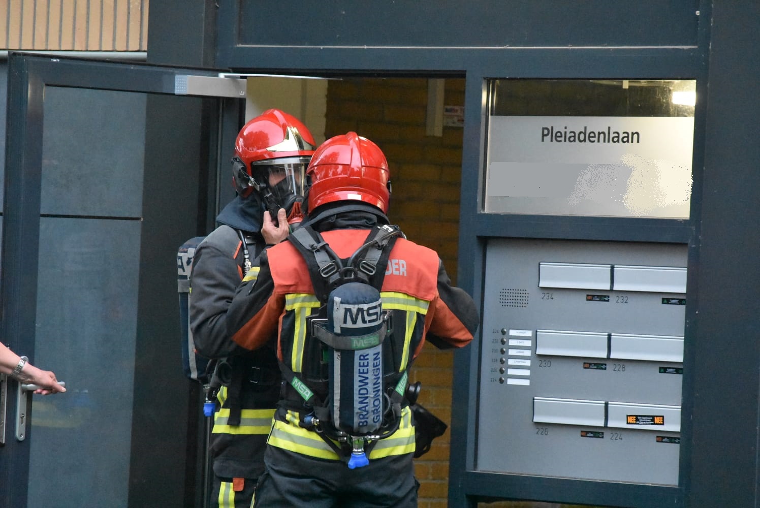 De melding van een brandgerucht kwam rond 20.30 uur bij de hulpdiensten binnen die daarop een tankautospuit ter plaatse stuurden. “Het gaat om een appartementencomplex”, vertelt Weening. “Verschillende bewoners staan buiten. Ik sprak zojuist met een aantal van hen en zij hebben de hulpdiensten gebeld. Ze roken een vreemde lucht en zagen wat rookontwikkeling.” De Groninger brandweer is bij aankomst een onderzoek gestart. “Ze hebben met behulp van een stormram zich toegang verschaft tot een kelder.”