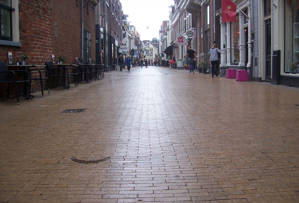 Precies in het midden van het plaveisel moeten deze bronzen maantjes een maancyclus vormen. Maar de twee maantjes aan de kant van de Vismarkt lagen sinds een herbestrating visueel niet meer in het midden van de straat. Toen er nog stoepen aan de straat lagen, was dat wel het geval.
