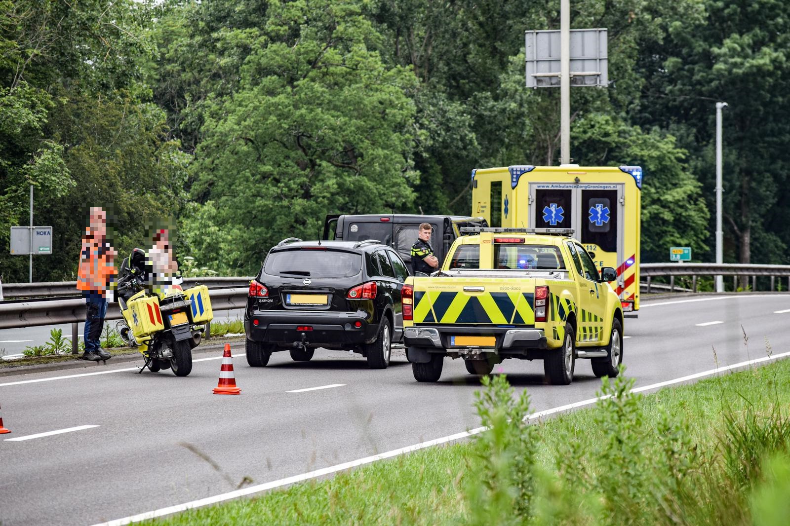 Het ongeluk gebeurde rond 12.15 uur op de rijbaan tussen de kruising Leonard Springerlaan en de afrit Peizerweg. “Hoe het precies kon gebeuren is onbekend”, vertelt Ten Cate. “Een personenauto is achterop een busje gebotst. Hulpdiensten waren snel ter plaatse. De bestuurder van het busje is onderzocht door een verpleegkundige van de ambulancemotor. Even later kwam een ambulance ter plaatse. De bestuurder is na stabilisatie met onbekende verwondingen in de ziekenwagen overgebracht naar het ziekenhuis.” Om de hulpdiensten veilig hun werk te kunnen laten doen werd één rijstrook afgesloten.