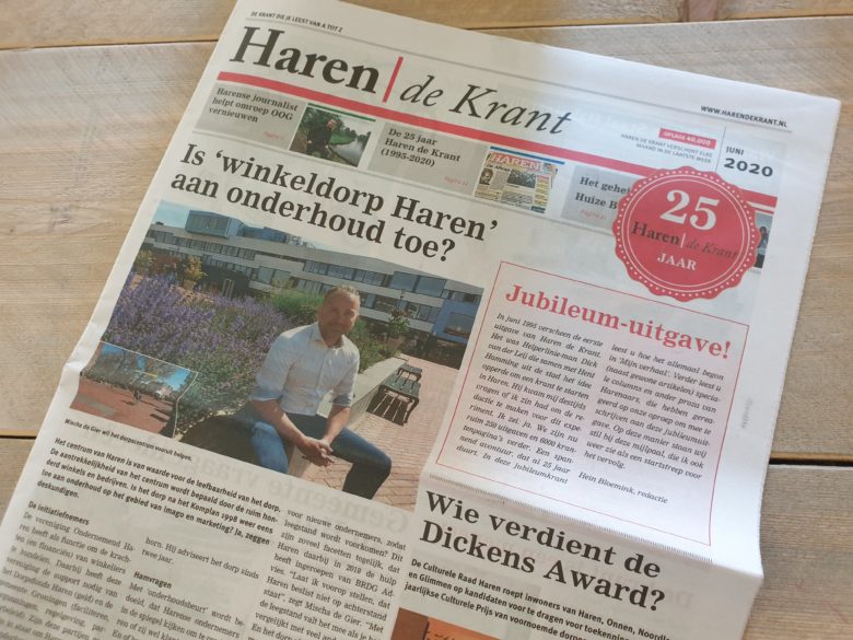 Het zelfstandig huis-aan-huiskrant Haren de Krant bestaat deze maand 25 jaar. Haren de Krant komt maandelijks uit, en is online te bekijken, maar roeit ook een beetje tegen de stroom in omdat men ook echt een papieren krant wil blijven.